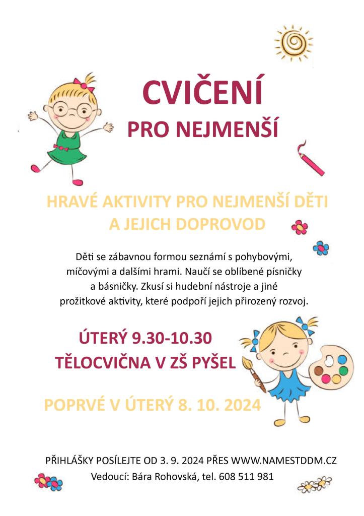 Cvičení pro nejmenší v pyšelské škole začne od října, přihlášky přes DDM Náměšť nad Oslavou