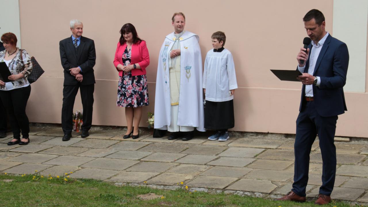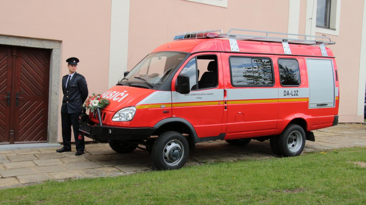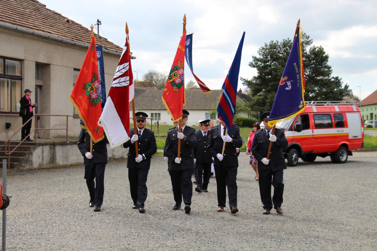 Žehnání nového hasičského auta, slavnostní průvod k hasičské zbrojnici, program na návsi